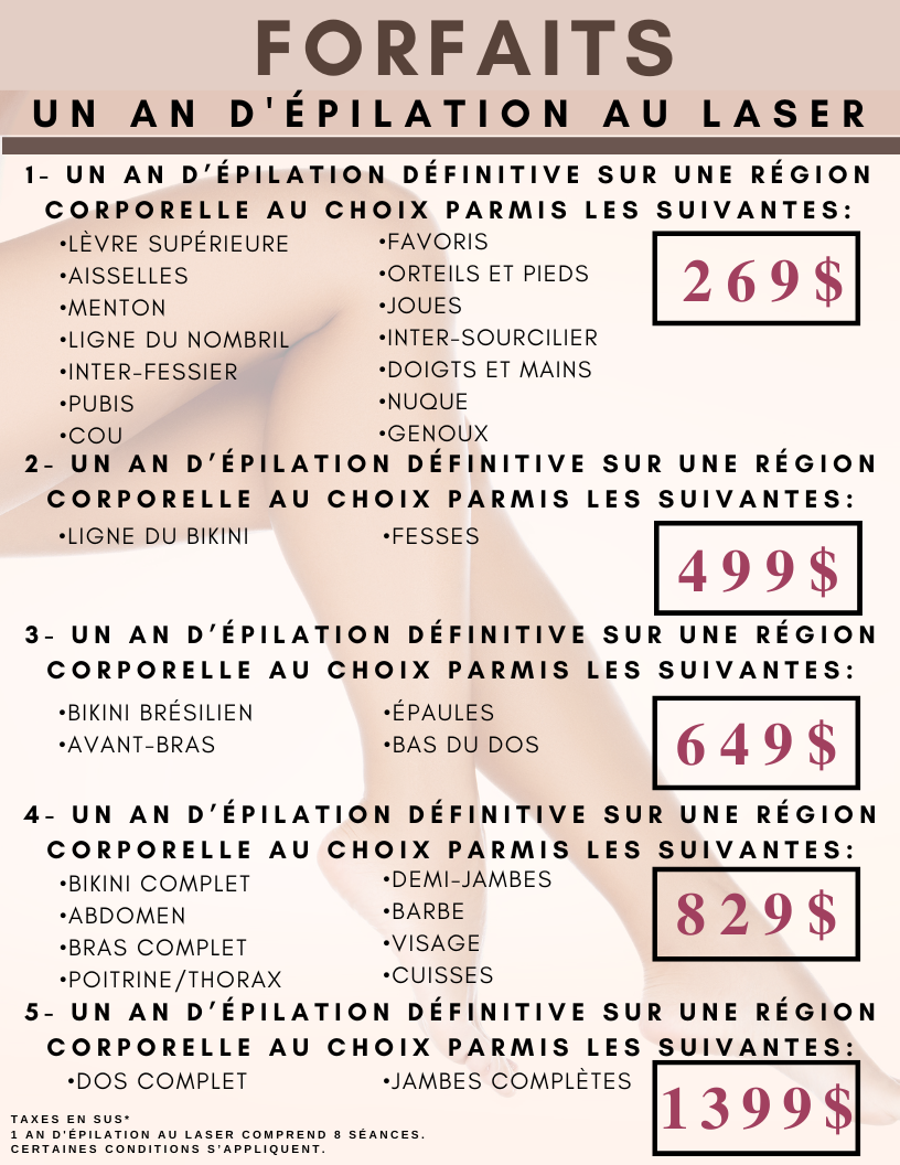 Aucun remboursement sur les soins, forfaits ou produits.